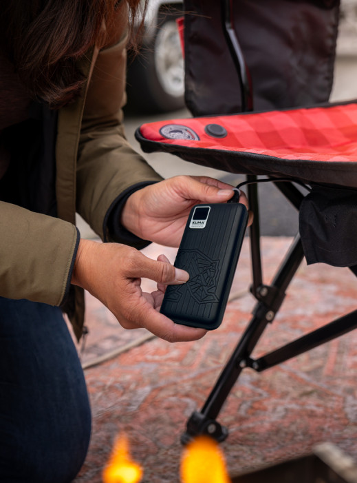 Stylish and durable power bank that can go anywhere with you on your next indoor or outdoor adventure. Perfect for on-the charging or a back up power source for your heated chair or any other device.